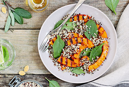 Quinoa spinazie-feta zoete aardappelsalade (glutenvrij)